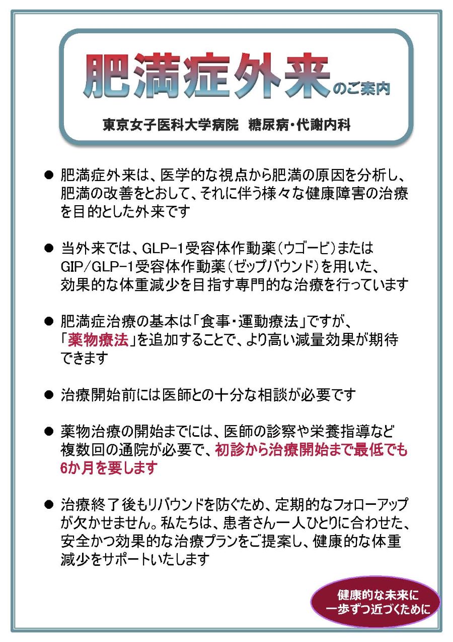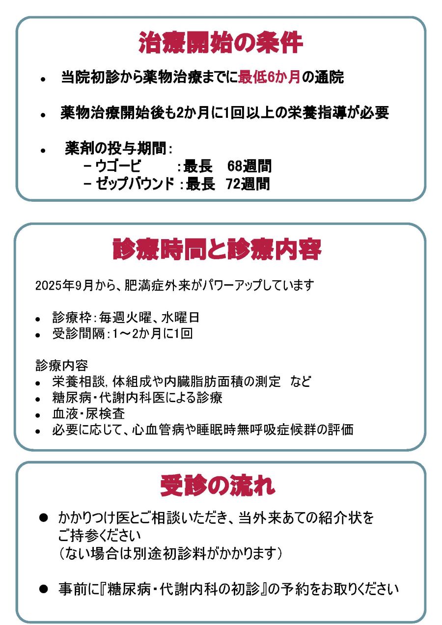 肥満症外来は、医学的な視点から肥満の原因を分析し、肥満の改善をとおして、それに伴う様々な健康障害の治療を目的とした外来です。